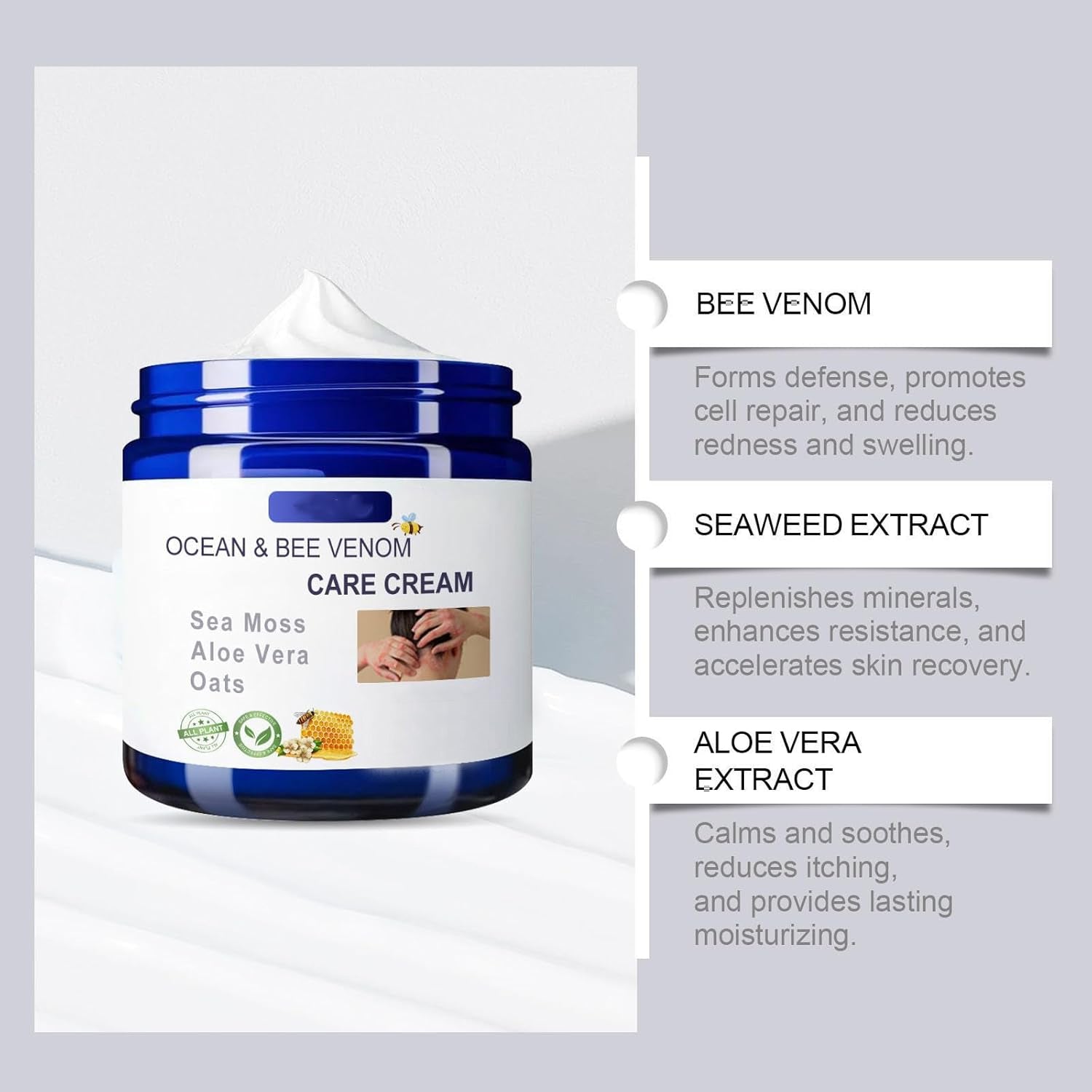 Introducing Bee Venom & Ocean Natural Eczema Psoriasis Relief Cream, a powerful blend of nature's best healing ingredients to calm irritated skin, reduce redness, and relieve itching. This dermatologist-approved formula is specially designed to help eczema, psoriasis, and dry skin conditions by deeply moisturizing and nourishing your skin.